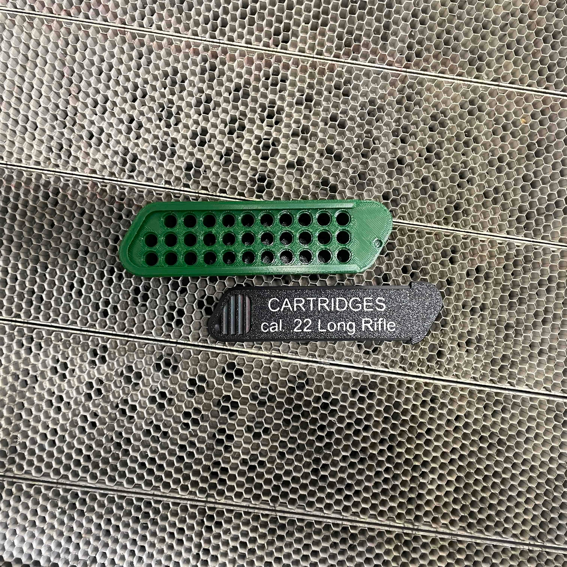 Locket levereras som standars med texten "CARTRIDGES" följt av kalibers namn. Om du vill ha en annan text behöver du ange det i din order, genom att skriva i kundvagnens "Beställ särskilda instruktioner" fält.