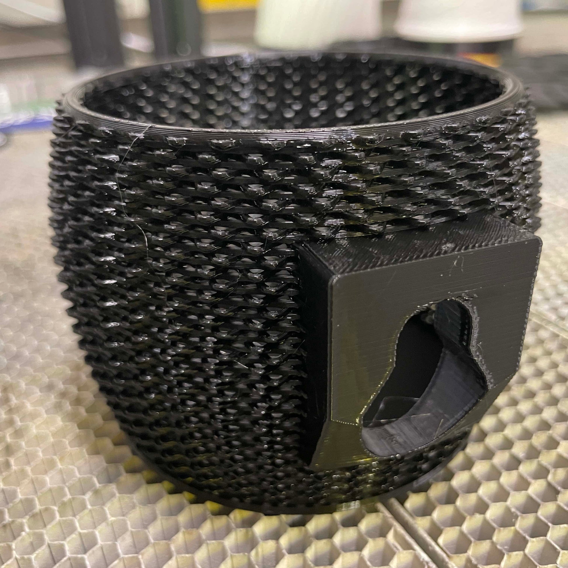 En mugghållare med exklusiv design för dig som vill ha fikat nära till hands eller då du behöver lite extra förvaring till den nyblivna favorit blomman, pinnen, stenen och lövet. Kantens små hål gör mugghållaren självdränerade så att den enkelt kan sköljas av med tvål och vatten vid behov.